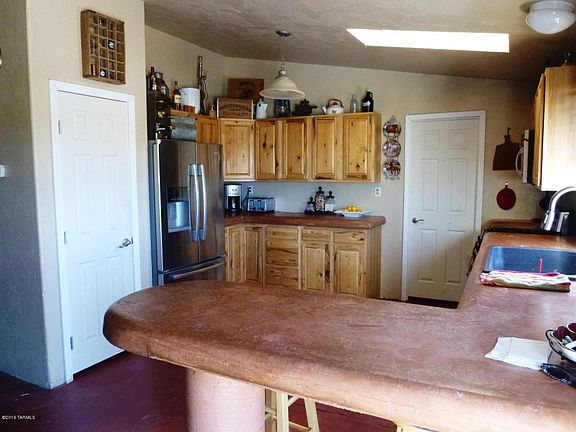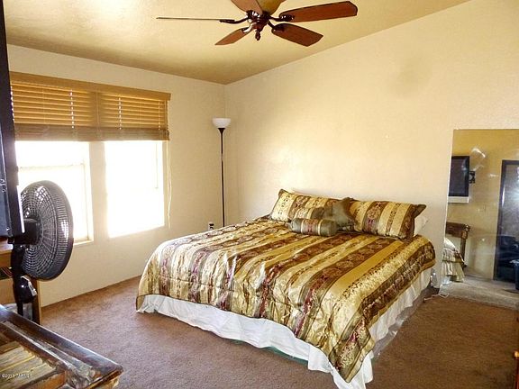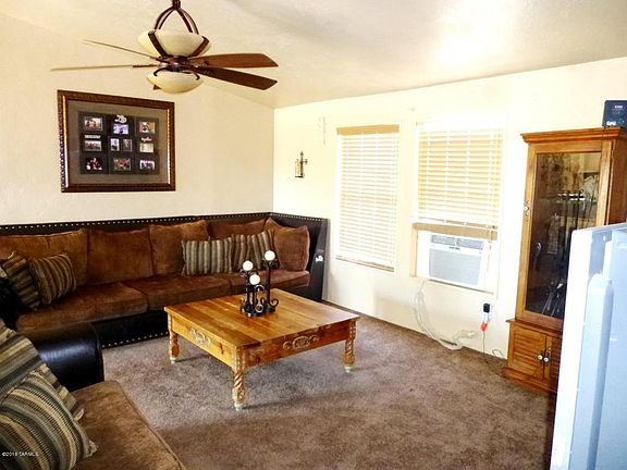 Price reduced! Partially renovated Palm Harbor doublewide on 2 acres of flat, usable, and fenced land. Home has updated kitchen with skylight; updated bathrooms include big custom shower in master bath. Spacious living room, 3 bedrooms plus den/office currently used as 4th BR but with no closet. Many ceiling fans. Exterior has been prepped for stucco. Wall AC in living room works fine, but central HVAC inoperative. Sold As-Is. Lot borders CAP property for continued privacy to north. Horse stalls not included and will be removed, but great area for horses or gardening. GR-1 zoning might allow lot split. House was moved so will NOT qualify for FHA loan.