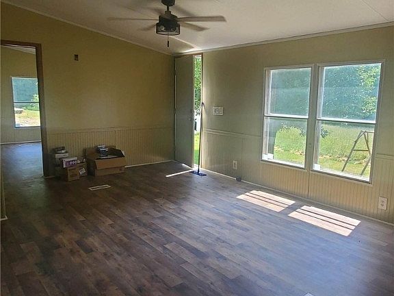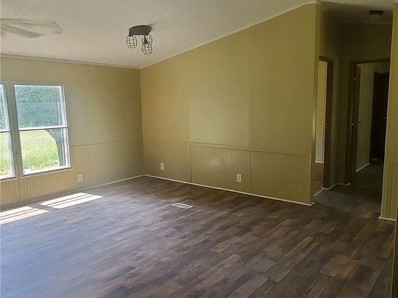 UPDATED manufactured home on 3.45 acres!! Spacious living open to dining area. Kitchen with white cabinets and stainless steel dishwasher. 3 bdrms. 2 full baths. Utility rm. Fresh paint and new laminate flooring throughout. Updated bathrooms. Shed.