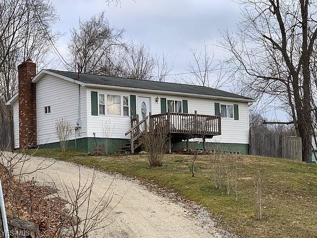 Close to RHSD is this great 3br. 1 bath ranch home that's situated on a half acre lot with fenced in yard and deck for relaxing on. The home has a full basement with family room and fireplace to sit and cuddle by in the winter or go and watch your favorite movie in the evening. There's plenty of storage in the basement and it has a shower and an additional hookup for another bathroom and also another bonus room to make an office out of or toy room. The home has a galley kitchen with oak cabinets and appliances can stay, the open layout with the dining and living room are nice with the sun shining through the big windows and the view is gorgeous of the countryside. The home has two brand new doors and laminate flooring throughout and is ready for your viewing. So call today to step inside this lovely home. Home Warranty included!