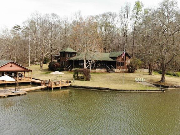 AMAZING 2 Acre private gated lot w/566 water frontage complete w/Rocking Chair front porch practically IN THE WATER! beautifully restored house & grounds; covered boatdock w/dining & outdoor den w/TV. Floating dock, fire pit & wide ramp along water & yard. Great storage building + car/boat/RV Port. Ample parking areas added for the entire family! Beautiful kitchen w/SS appliances. Exterior newly stained. New pump added for sprinkler system. NEW HVAC w/new duct work for larger side of house + new larger water heater recently added. Original concrete ramp remains for easy water entry for all the toys! Small screen porch w/dog door to sm fenced area to play. Quiet cove w/gorgeous views of big water. Nice master on main + bunk rm + 2 extra bedrooms. Easy access