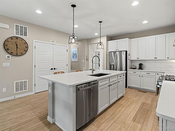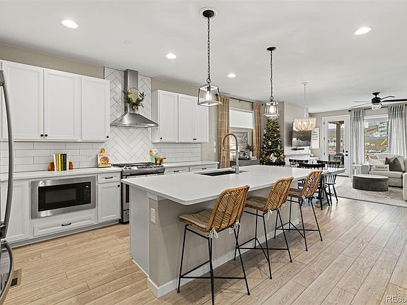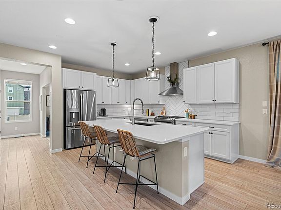 Like new urban contemporary home offering the perfect balance between sustainable living and modern conveniences Situated on quiet tree lined street in the highly desirable Crescendo at Central Park neighborhood. Highly walkable and just steps away from restaurants, shops, parks, trails and more. Full tour available at www.9071Southurst.com. Enjoy mountain and downtown views from your covered front deck. Celebrate homegrown traditions and explore the art of cooking in your gourmet kitchen, complete with stainless appliances, quartz counters, and custom cabinets. A generous owners suite is a welcome retreat of luxury and restfulness. Highlighted by a spa bath with oversized shower and large walk-in closet. Two additional bedrooms with shared bath complete this second-floor bedroom level. Need a quiet private space for your zoom video calls the main floor study is a perfect place to work from home. The lower level complete with bed and bath can flex as a home gym, secondary office, or a private guest suite. If you are looking to live a life of excellence, set a time to see this impeccable home today.