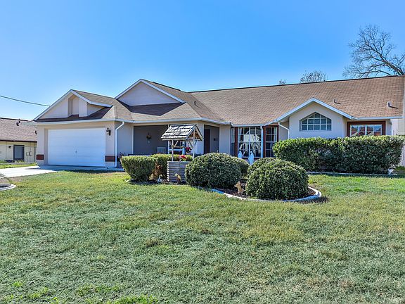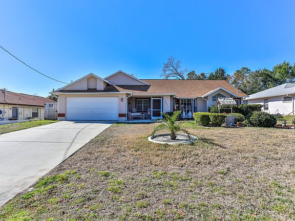 Pride of Ownership is apparent here! Well maintained Rutenberg built home. Screened front porch welcomes you. Once inside you'll enter the spacious great room with a cathedral ceiling and beautiful laminate wood flooring. The kitchen is open and bright with new tile backsplash. Complete with breakfast bar and adjacent casual eating nook. For a more formal meal, there's the dining room with sliding glass doors that lead to the patio to enjoy all year round with vinyl windows. The 3 bedrooms are of split design providing privacy for the master suite. You'll love the remodeling that was done in the guest bathroom! All appliances included, even the washer and dryer. Fully fenced backyard. Roof 2004. A/C 2008. This is a repaired sinkhole property with documents on file, available upon request.