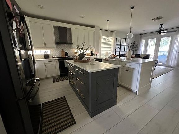 Beautifully maintained and fully renovated, this two-story home offers single-story convenience with a master suite and two bedrooms on the main floor, plus a loft/bedroom with a full bath upstairs. The custom kitchen features white shaker cabinets, Calacatta Regio countertops, and GE Profile black stainless-steel appliances. All bathrooms are remodeled, with the master bath including a luxurious wet room. Highlights include a paver driveway, covered patio, wood plank tile downstairs, luxury vinyl upstairs, and a 5-ton Carrier A/C (2 years old). Storm-ready with accordion shutters, whole-house surge protection, a generator switch (generator included), and Ring floodlights. ...Fernando CastroEnglish-Spanish...Courtesy of Palladium Investments Inc (Listing 7095706 Confirmed 10/23/2024)