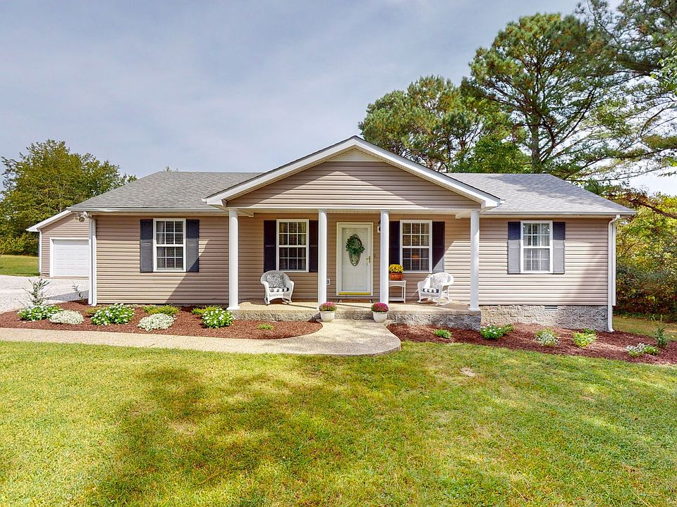 Beautiful one-level living in Bon Aqua, TN under $300,000! Less than 5 minutes to I-840. Less than 15 minutes to Fairview. Secluded yet convenient! Lounge by the pool and enjoy the freshly painted deck or stay indoors and relax in the expansive living room. This home features a primary bedroom with an en suite bathroom. Down the hallway you’ll find two additional guest rooms and a full bathroom. Fresh paint in main living areas. Plenty of parking in the oversized, newly graveled driveway or in the 2-car detached garage. Available for showings October 12th.