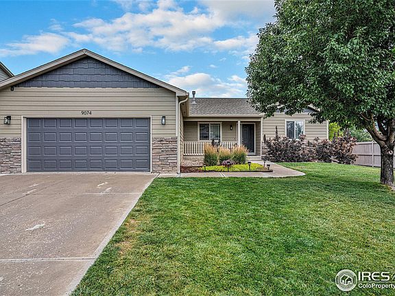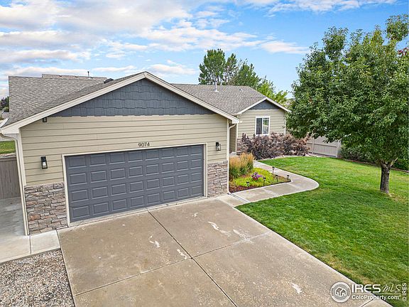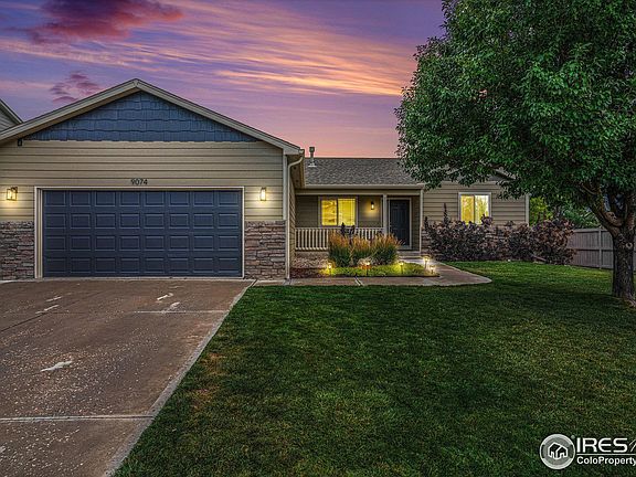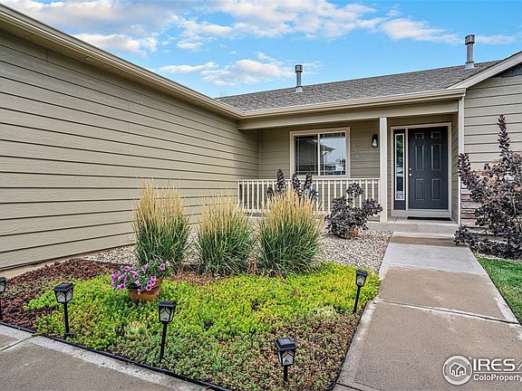 Motivated Seller due to military move. Spacious ranch, open floor plan and updates throughout. Full finished basement just completed. New solar system included, saving thousands annually, 5 bedrooms, 3 bathrooms, walk-in closets. New luxury vinyl flooring throughout main level, new concrete counters in kitchen with new appliances and cherry cabinets. Built-in table in breakfast nook opening to great room with vaulted ceilings and gas fireplace. Master w/5 piece bath is separated from 2 & 3rd bedrooms, with 2 additional bedrooms in basement. Large family room for entertaining and game areas. Large covered patio off back yard overlooking fully fenced yard. Full exterior paint and sealant completed in June 2024. Neighborhood is adjacent to Wellington Park with batting cages, ball fields, and park. Enjoy small town living with easy access to Fort Collins and Old Town. Pre-inspection has been completed and is included in extras tab.