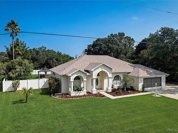 This stunning 3 bedroom, 2 bathroom home boasts 2098 square feet of luxurious living space, nestled on just under half an acre of meticulously landscaped paradise. The open floor plan creates a seamless flow throughout the home, providing the perfect setting for both relaxation and entertainment. The absence of a fireplace allows for a modern and spacious living area, ready for your personal touch. Natural light floods the interior, highlighting the freshly painted walls that exude a sense of warmth and tranquility. The heart of this home is the kitchen, adorned with brand new granite counters that perfectly complement the sleek cabinetry. Whether you're a seasoned chef or a culinary enthusiast, this kitchen is sure to inspire your gastronomic creativity. Retreat to the spacious master bedroom, basking in an abundance of natural light. The master bathroom is a true gem, offering ample space and brightness to start your day in the most refreshing way. The pool has just been resurfaced and equipped with new pool equipment. The lanai, adorned with all-new pavers, sets the stage for alfresco dining and relaxation. A separate area features a charming gazebo and an outdoor grill, ideal for hosting gatherings and savoring the Florida sunshine. Practicality meets aesthetics with the extended wide driveway, ensuring abundant parking space for both your family and guests. With a roof that was replaced in 2021, you can move into this home with peace of mind, knowing that it has been well-maintained and is ready to welcome its new owners. Don't miss the opportunity to own this exquisite property that seamlessly blends indoor and outdoor living, offering a lifestyle of comfort, luxury, and endless memories.