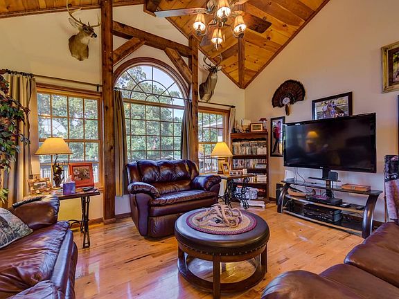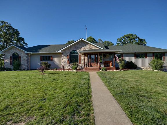 Amazing Home on 151 Private Acres! Perfect horse or cattle ranch, hunting lodge, a bed & breakfast, or your own dream home! 100 wooded acres with trails, 2 ponds w/ abundant deer & turkey. 40x50 barn with room for stalls. This beautiful home features a w/o basement with 3452 finished sf. Two living areas, 3 BRs, 3 baths, study & a hobby room. Chef's kitchen with a gas stove, double ovens & granite counters, open to the dining with a gas FP & hickory flooring. Master suite includes a sitting area with a gas FP. Amazing master bath with a jetted tub, his/her sinks & walk-in closets. Basement includes a family & hobby room. Possible 4th BR. Enjoy privacy while relaxing by the large inground pool! Zoned HVAC & an outdoor woodburning furnace. Close to Springfield, Joplin, area lakes & Branson.