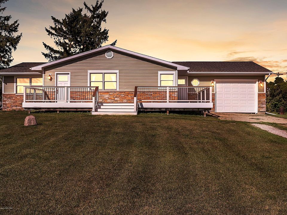 Welcome to 9075 Round Lake Road! Your gorgeous country retreat, just minutes from Downtown Laingsburg and US-27 with natural gas and cable internet available! Included are 10 acres of rolling farmland, perfect for the hobby farmer, horse lover, or pole barn tinkerer! Immediately feel rooted in this tight-knit community with great schools, a weekly Farmer's Market, and local favorite restaurants such as Tammy's Bakery and PDP Pizzaria. The land offers so much potential with four pastures already in place and three outbuildings, including a 52' x 64' pole barn with 14' truss height. The barn include a separate 150 amp service, and a 16' x 32' concrete area that would be a perfect office or shop. There is also a 24' x 40' corn crib that just needs wall panels to put into service as well as a 24' x 40' grainery with 11 stalls already in place. The exterior of the house is virtually maintenance-free, including a brand new roof (2018), newer siding/stone, and windows, as well as a large composite trexs deck with views of the pastures. Inside, you will love a foyer area with built-in bench that opens to the large living room and into the kitchen and dining room. No expense was spared in the kitchen with custom built hickory cabinets with slow-close doors/drawers, quartz countertops, ceramic floors, and stainless steel appliances. There is also a back mud room that connects to first-floor laundry and a half bath. Three first floor bedrooms and a full bath complete the first floor. Call today for your private showing!