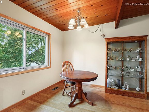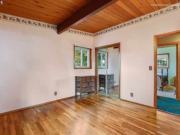 Wonderful mid century home with remodeled kitchen, custom solid oak pull out cabinets. Hardwood on main level and under carpet in LR. Exposed beam with tongue and groove ceiling on upper level. Reinstall wall to second bedroom for 3 BR's upstairs. High end Milgard vinyl windows. Slider in basement leads to great backyard with deck, patio and gazebo, great for entertaining. Family rm, 2 bedrooms, full bath, office and storage room in daylight basement. I-5 and busline access.