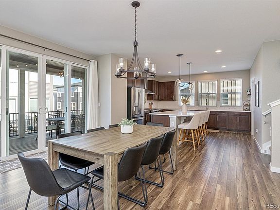 ~ Bright and Open 3 Bed + 3 Bath Home in Like-New Condition ~ Amazing Highlands Ranch Location, Close to Shopping & Restaurants, Parks & Trails, and Recreation Centers with Easy Access to C-470, Broadway and Santa Fe ~ Step onto the front porch of this interior end unit from the peaceful green belt ~ The Entry welcomes you with tall ceilings, a walk-in storage closet, and has convenient access to the Garage; Up the wide staircase is the Great Room with the Living Room space on one end, the Kitchen on the other, and the Dining Room in between ~ Windows flood the room with natural light from all sides ~ 9 foot ceilings, neutral paint, recessed lights and wood flooring unite the Great Room ~ This space can accommodate a variety of seating arrangements, a roomy dining table and still have smooth flow for family and guests ~ There is a sliding door leading to the Covered Deck (9'7" x 19'4") with composite decking, recessed lights, stairs to the patio and room for seating, eating and grilling ~ The patio and yard are much larger than most ~ The Kitchen is chef-ready with tons of cabinet and counter space, up-to-date appliances and lighting for all moods ~ The Pantry provides additional storage and the huge island is great for informal dining or large-scale food prep ~ All three Bedrooms are on the upper level and enjoy plentiful windows and tall ceilings ~ The Primary Bedroom is at the front of the home with a walk-in closet and well-appointed ensuite bath - a serene space to retreat and relax ~ Both secondary Bedrooms are down the hall, past the full shared bath and the convenient laundry ~ Of similar size, the bedrooms have great light and closet space and could work for family, guests or as office space ~ Be sure to check out the Garage, with the extra space for a gym, workshop or storage ~ The community handles trash, snow removal and maintains the green spaces in the neighborhood ~ Set a showing today and take a stroll around to see all the area has to offer!! ~