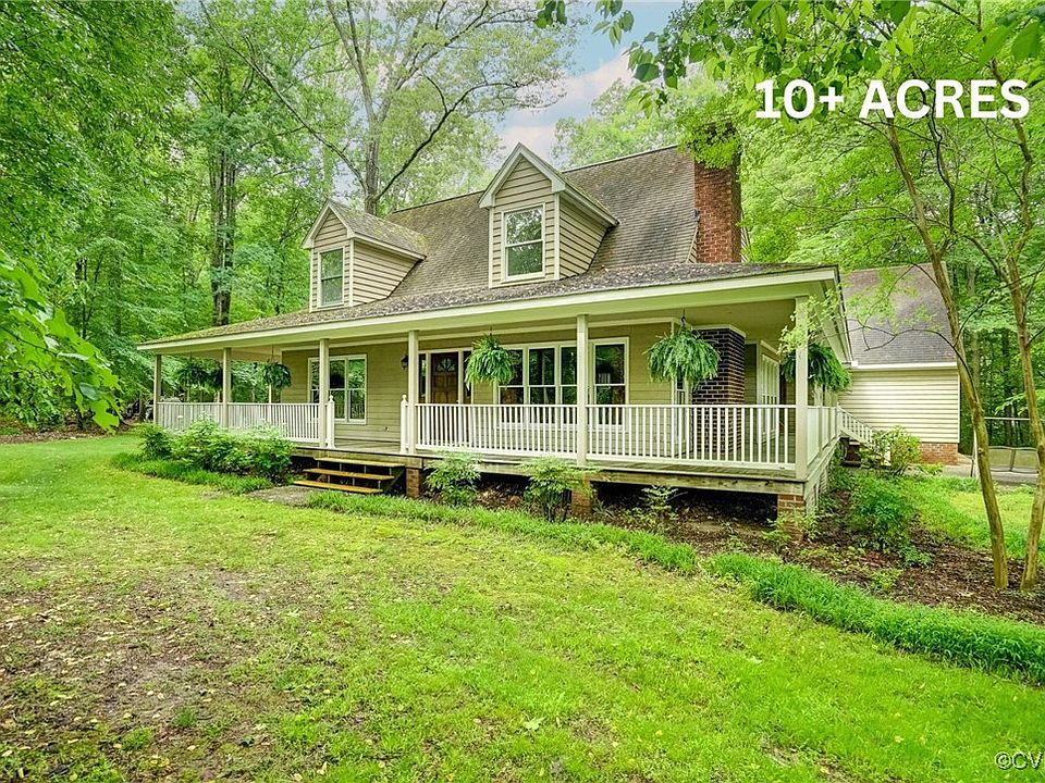 Once in a rare while you come across the ONE. This rustic Cape Cod is loaded with country charm and was carefully crafted by its current owners. Upon entry, take notice of the open concept family room with expansive vaulted ceilings, hardwood floors and a full brick wood burning fireplace. This area connects nicely with a generously sized kitchen that offers stained oak cabinets featuring an island w/granite countertops. There are two guest rooms, a full bath and laundry/utility room to finish out the first level. The 2nd level offers a guest room, a huge bonus room over the garage and of course the Primary Suite w/attached ensuite and generous closet space. The exterior offers 10 private, wooded acres, an attached oversized 2-car garage w/raised ceilings, a FULL WRAP 8' deep country porch all the way around and a partial paved driveway up near the home. This one is a rare find so make plans to see it today.