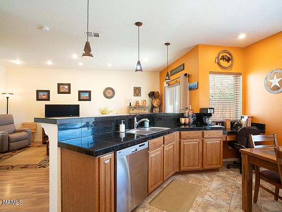 You should take a look at this freestanding townhouse just minutes from Flagstaff and Northern Arizona University. With views of the San Francisco Peaks, this home is within walking distance of the Coconino National Forest. This well-maintained home has upgraded granite countertops with a desk space and stainless steel appliances. The dining nook has views of the tidy backyard with a large paver patio. Two large primary bedrooms are upstairs with easy laundry access and a washer and dryer. The two-car garage has a unique paver driveway. Unlike many others, the HOA covers the roof, exterior siding, and the front landscape. The listing agent must accompany.