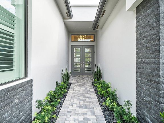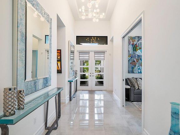Stunning one-story, fully upgraded home in the highly desired Boca Bridges. 3 bedroom plus den! This home features a long list of upgraded features and was meticulously designed to be a stand out in the community. The home owners sparred no expense in design. The contemporary home features soaring 12 1/2 foot coffered ceilings with gorgeous tile and wood flooring. The living area features a custom entertainment center and built in bar area with Quartz countertops. Additionally, the home has custom, motorized blinds throughout. The bedrooms all have ensuite bathrooms that feature upgraded tile, vanities, lighting, and mirrors.Custom, European light fixtures throughout the home. The backyard features pool, spa and summer kitchen. Electronics included.