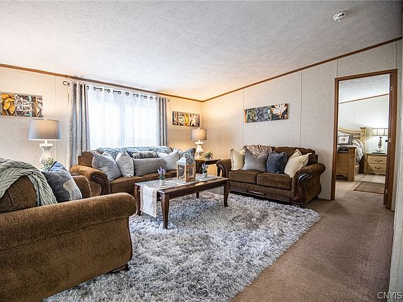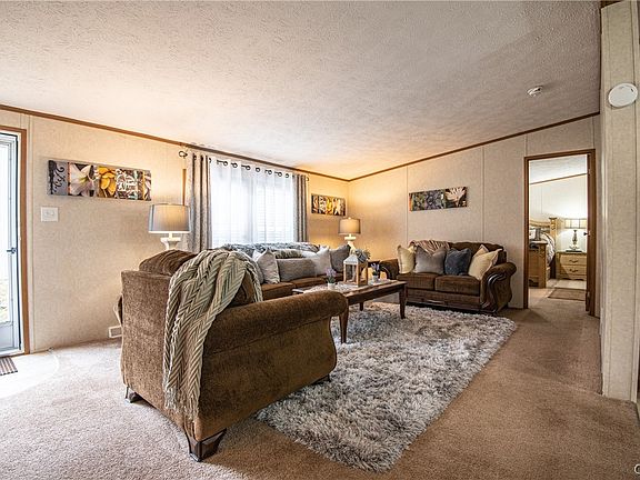 Nestled on a 2.6 acre wooded lot in the Town of Lee is this beautifully kept doublewide manufactured home waiting for you to call it your own. With 4 bedrooms plus an additional room that can easily flex as a 5th bedroom, formal dining room, or office there are plenty of options to accommodate a variety of needs within the generous 2128 square foot floorplan. A fantastic primary suite with walk-in closet and ensuite bath with double sinks sits on one side of the home, while the other 3 bedrooms and full bath flank the other end. The large country kitchen with both a breakfast bar/island and space for a table is the heart of this home offering an ideal space for anyone who loves to cook or entertain. Central A/C, fireplace with electric insert (could convert back to wood), and large garage/outbuilding for storage or workshop.