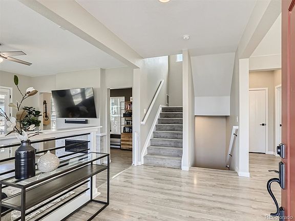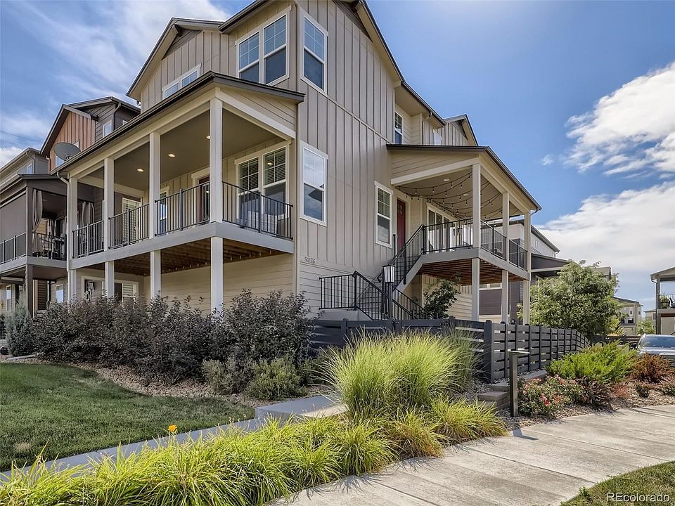Beautiful move-in ready home located in desirable Crescendo at Central Park. The spacious kitchen features a large center island with seating, white quartz countertops, upgraded stainless steel appliances, gas cooktop, walk-in pantry and ample storage in soft-close shaker cabinets. Open floor plan with expansive 9-foot ceilings leads into a dining area and great room perfect for entertaining. The great room boasts a modern dual-sided gas fireplace shared with a comfortable office. The main floor also includes a half bath and features luxury vinyl plank flooring throughout. Upstairs the large primary bedroom includes a private ensuite bath with an oversized walk-in shower and custom designed walk-in closet. This lovely home also offers two additional upstairs secondary bedrooms, a full bath, a spacious laundry room with Samsung washer and dryer and versatile loft. Entertain on the multiple large covered decks with views of the adjacent park or relax on the patio with a fully fenced, low-maintenance, turf yard. This home is complete with an oversized 3-car garage with 220v for electric vehicles, plenty of storage and room for a home gym. Premium lot located directly next to an interior neighborhood park away from any busy streets. A short walk to shops and restaurants at both Town Center and Central Park, close to UC Health and Colorado Children's Hospitals and access to miles of outdoor trails. HOA includes membership to all four Highlands Ranch recreation centers. Easy access to C-470, light rail, downtown Denver and the mountains. This home will suit buyers with the highest standards. Show today! You won't want to miss it!