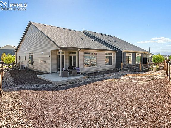 The only " RESORT STYLE" 55 plus gated community in Colorado Springs that provides you with an abundance of activities within walking distance from your home surrounded by spectacular views of the Front Range and Pikes Peak. A full time staff of lifestyle directors planning activities and events, a clubhouse complete with "state of the art" gym and movement studio with exercise classes, dining area, golf simulator and game room, huge kitchen and entertaining area for friends and family. Walk-in infinity pool with lap lanes, outdoor spa with view of the Front Range at sunset. The community includes a large dog park area for your pups, 8 pickle ball courts, 2 bocce ball courts , private garden areas and walking trails surrounding the community. This home has one of the largest fenced back yard lots in the neighborhood with covered patio in the back yard , beautiful flat stone, river rock and mulch. The front yard includes a covered front porch which will become one of your favorite locations for coffee or cocktails as you have a direct view of pikes Peak. This spacious ranch home has an open- concept family and gourmet kitchen area complete with spacious pantry, gas range/oven and another built in convection oven and microwave, large island for food preparation and bar seating. Walk out to your covered patio from the kitchen area for grilling and entertaining in your large fenced back yard. Back yard has plenty of areas available for customizing and landscaping your own personal oasis ! 2 bedrooms provide additional privacy with one in the front of the home and one in the back. Flex room may be used as office or separate dining area, large laundry room with storage space and 2 car garage. Your front yard has irrigation and is maintained by the HOA. If you are looking for great neighbors, a community feel, events and entertainment, a fantastic Colorado Springs location with beautiful views of the Front Range and Pikes Peak..The Retreat is the place for you! Tour today!