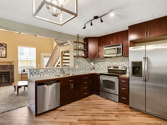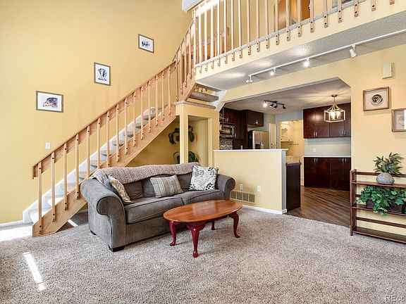 Beautiful home close to trails & parks. Nicely updated kitchen with upgraded cabs, stainless appls, pantry, wood floor, upgraded lighting & fixtures. Opens to living room with vaulted ceiling, skylights, fireplace with lovely decorative tile surround. Access to deck/yard area. Main floor laundry with cabs , washer & dryer included. Sunny upstairs loft is great spot for office or library, skylights. Master has vaulted ceiling, double closet, architectural niches, access to full bath. Second bedroom has vaulted ceiling, nice half moon window for extra light & niches above closet. The deck/yard area is great for relaxing, gardening & has back gate to greenbelt.