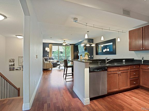 Best deal in the area! Don't miss this double unit floor plan perfect for a month-in-law suite with a private entrance on both levels. This 4 bedroom 3 bath is filled with upgrades from wide plank wood floors, gourmet kitchen with slab granite & stainless appliances. An expansive main level with large dining area & an open family room filled with natural light & a gas FP. A beautiful master suite with 5 piece tile bathroom & walk-in closet as well as another large bedroom with a large closet. On the lower level is perfect for entertaining with a wet bar complete with a fridge, ice maker, sink and wine fridge. 2 additional large bedrooms, new carpet, & an upgraded Jack & Jill bath. The club house has a work out facility along with a pool &hot tub, sitting area with a FP, kitchen, eating area and game room. Secure building w/ 2 parking spaces, storage unit & great amenities including a pool, clubhouse & work out room. Located less than a mile from the Dry Creek light rail station & I-25