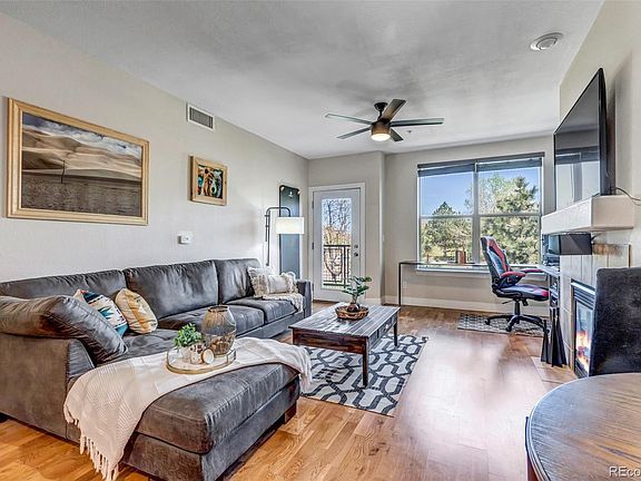 Seller offering $1500 concession!!! Don't miss out on this stunning one bed one bath condo in Dry Creek Crossing! This 4th floor unit has a beautiful open floor plan boasting of large windows giving TONS of natural light throughout. This open concept flows from the large kitchen with shaker cabinets, slab granite countertops, stainless steel appliances, and eat-in bar. Into the family room you will find a beautiful gas fireplace, and dining nook. Be sure to take note of the wonderful accent lighting throughout. Make your way out to the covered balcony with natural gas hook ups, just in time to enjoy a summer barbeque! The large master bedroom includes a walk in closet with plenty of room for storage. Enjoy getting ready in the morning in the full bathroom with tile flooring and dual sinks! This central DTC location is within walking distance to the light rail or short drive to shopping and nightlife. The secured heated parking garage includes a large storage locker ensuring extra protection for your storage items. The Dry Creek Crossing community offers a beautiful community pool and hot tub, as well as a business center and common area for hosting parties, get-togethers, or if you need a quiet working space, Dry Creek Crossing has it all! Improvements to the property include, maintenance on the A/C unit in 2021 and new carpet installed in the primary bedroom in 2020. Schedule your showing today!