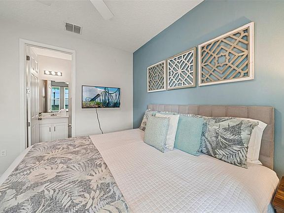 TURNKEY 7-BEDROOM SOLARA RESORT HOME – FULLY FURNISHED Welcome to this stunning 7-bedroom, fully furnished home located in the sought-after Solara Resort community. Designed with both comfort and style in mind, this modern and spacious property offers the perfect blend of relaxation, entertainment, and investment opportunity. The bright, open-concept living area brings together the kitchen, dining, and family room, creating an ideal space for gathering with family and friends. Large sliding doors open to the private screened lanai and pool area, filling the home with natural light and enhancing indoor-outdoor living. The kitchen features stainless steel appliances, granite countertops, bar seating, and ample cabinetry—perfect for casual meals or hosting. The thoughtful layout makes entertaining easy and enjoyable. Two generously sized primary bedrooms are located on the first floor, offering convenience and privacy. Step outside to the spacious lanai with outdoor dining for six, sun loungers, and a charming tiki-style bar. The private pool includes a safety fence, spill-over spa, and a pool bathroom with direct outdoor access—ideal for enjoying Florida’s sunshine year-round. The first floor also includes a themed game room complete with air hockey, foosball, arcade games, and comfortable seating, providing fun for all ages. Upstairs, you’ll find an incredible Superhero-themed bedroom featuring custom twin-over-full bunk beds, multiple TVs, a foam pit, and a slide—truly a guest favorite. An additional upstairs loft offers a pool table, TV, and cozy seating, creating another inviting space to unwind. This home is move-in or rental ready, making it an excellent primary residence, vacation home, or income-producing property. Don’t miss this opportunity to own a beautifully maintained Solara Resort home with exceptional features and strong appeal. Schedule your showing today.