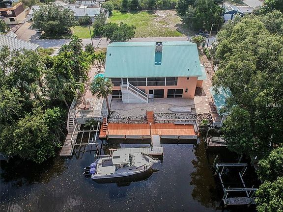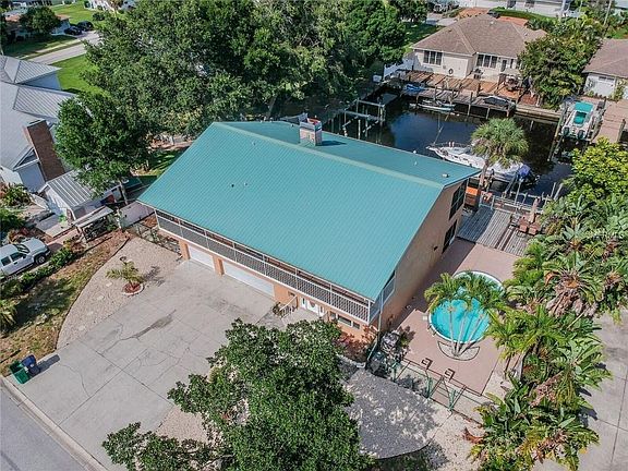 METICULOUSLY REMODELED HOME, with Private Pool and Dock with Lift, on 100ft of WATERFRONT PROPERTY. This 4 bed, 3 bath, 4-CAR GARAGE (w/ new epoxy flooring) home is located on a SALTWATER CANAL with NO bridges separating it from the gulf. The private pool features a NEW salt water chlorination system. The home boasts two living areas so you can add an expansive game room. There is also a wall that separates a tandem garage and a 2-car garage. You'll find spectacular views from all 4 bedrooms which all walkout to one of the 3 oversized, screened-in patio areas. The home boasts luxurious porcelain tile downstairs and top-of-the-line laminate upstairs, granite countertops throughout, stainless steel appliances, upgraded fixtures, completely remodeled bathrooms, a gourmet kitchen with wine cooler, and 2-way fireplace that can be enjoyed from the living room or master bedroom. Other highly notable features are a boat house/storage facility, LED lights around the outside of the home, washer/dryer hookups upstairs and downstairs, built-in speakers, new garage doors, 2 NEW COMPLETE A/C UNITS, and metal roof. A TRUE MUST SEE!
