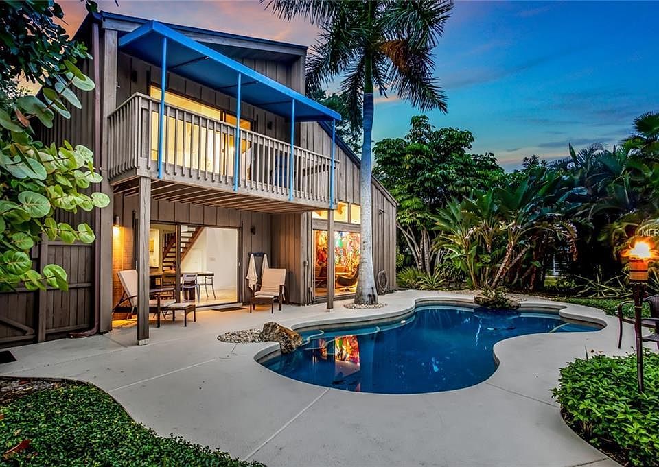 Casual sophistication describes this WATERFRONT gem that perfectly showcases an up-to-the minute Mid-Century vibe, while offering the laid-back pleasures of coastal Florida living. Set on a quiet side street amidst a grouping of striking canal-front properties, this private oasis is just minutes from trendy downtown St. Petersburg to the north, and South to the cultural attractions of Sarasota. Perfect for entertaining, the home's interior opens up completely to the expansive tropical patio and pool deck through a wall of sliders across the back. Currently configured as a 3BD/2BH with a loft and Den, the unique flexible floorplan can easily be defined to suit your lifestyle. Completely private, and surrounded by lush tropical landscaping, the gorgeous custom free-form pool is the centerpiece of the back yard. A boater's paradise, your own private dock is right behind the house with a 7,000lb boat lift and direct access to the beautiful Manatee River, Tampa Bay and "no bridges" to the Gulf of Mexico.