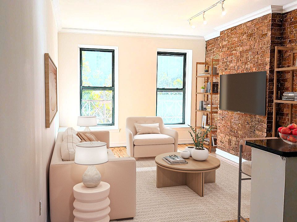 Sunny One Bedroom, One Bathroom Apartment With Hardwood Floors, Crown Molding, Exposed Brick Walls, Stainless Steel Appliances, Microwave, Dishwasher, And Breakfast Bar. New Black Granite Countertops And Bathroom Vanity Installed. Located In A Walkup Building Between 104th And 105th Streets, 1 Subway Train At 103rd Street And Broadway, Close To Columbia University. *Some Photos Are Virtually Staged.