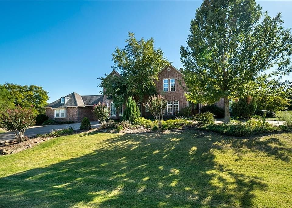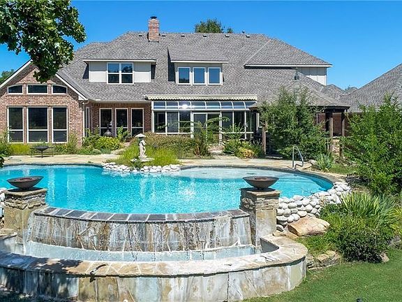 This beautiful and luxurious lake front home sits on a 1.3 acre corner lot and overlooks a to die for landscaped yard and infinity pool. Home includes a sun room with a separate wet bar, a living room with gorgeous wood floors and floor to ceiling windows it boasts crown molding and baseboards, a separate study which includes stately built-ins and its own fireplace. The fully covered and loaded outdoor kitchen includes a grill, stove and refrigerator - you can host all your friends and family in style. All bedrooms are large and have walk-in closets and access to their own bathrooms.Kitchen has double ovens, huge center island, pantry and tons of storage.The home sits in a country atmosphere but very close to both I-35, broadway extension, shopping, restaurants, medical facilities and Hospitable's. $60,000 in renovations which includes new roof and rain gutters.