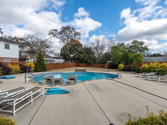 Updated Brick one level home in Overlook with 3 bedrooms and 2.5 bathrooms. Hardwood floors, Large Kitchen with stainless appliances to include 6 burner stove with griddle and double ovens, fridge/freezer, dishwasher, recessed sink, brick back splash with stone counters, large island, Bonus room office, large laundry room, 2 fireplaces, Huge main bedroom with 2 walk in closets, alarm system, large backyard with storage building, tankless hot water heater, screen porch, Nice pool with waterfall and sun deck feature in the water and the pool furniture is included as well as the TV on the screen porch. Irrigation system.