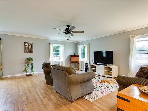 For sale is this beautiful ranch home in Pine Bush! The home is very spacious inside, and has a very comforting feel. It sits on a nice level lot, with 3.87 acres! There has been lots of recent updates, including two renovated bathrooms, new stainless steel appliances, tile floor in the kitchen, new washer/dryer, and more! The boiler & hot water heater are also brand new, and the owner installed a water filtration system. The home was always well maintained, and is very clean & tidy. There is lots of privacy, and also walking trails with a river in the backyard. The home also features hardwood floors throughout, a storage shed, fire pit, and back porch. Come see this home today and make it your own!