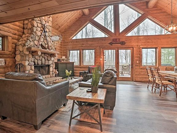 Your perfect Up North getaway This beautiful Mountain Cabin features 3 bedrooms and 3 1/2 bathrooms. Additionally, this charming Log Cabin offers a very spacious floor plan and is one of the only with lake views and a private driveway. Enjoy a cozy wood burning fireplace, deck and hot tub. The side by side custom double queen log bunks are the perfect kid's retreat. Only a short walk away is the beach at Deer Lake, Alpine and Monument Golf Courses. Enjoy all that Boyne has to offer: ski, golf, biking and hiking trails, dining, the Solace Spa, water park, zip-lining, horseback riding, tennis, shopping, new "this season" an 8-place high speed chairlift, skybridge and much more. Call today to tour this lovely Mountain Cabin ***New flooring, New Hot Tub Cover, New Hot Water Heater, New Washer and Dryer. And, just installed 12/22 a new high efficiency furnace***