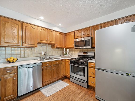 Don't miss this opportunity to make this well maintained 3 bedroom, 2 1/2 bath with 2 car garage townhouse in the Canterbury Commons Neighborhood your own! Easy level entry into the townhouse allows for convenience and easy access. This townhouse has been impeccably maintained top to bottom. There are hardwood floors in the Kitchen, Half Bath, Entry and Dining Room, adding warmth and style. The inviting Family Room is highlighted with a gas fireplace flanked by floor to ceiling bookshelves, sliding door to deck and easy maintenance flooring. Generously-sized Master ensuite has two double closets, wood blinds, ceiling fan and neutral carpet. The second and third bedrooms have ceiling fans, neutral carpet and wood blinds. Enjoy outdoor living on the well maintained deck with a wooded view, ideal for entertaining or unwinding. The townhouse is located in a cul-de-sac and steps away from the visitor parking lot. HOA covers roof, grass cutting, driveway/parking mtc. and more.