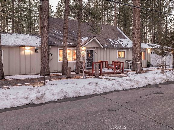 WALKING DISTANCE TO THE LAKE IN FABULOUS FAWNSKIN - the perfect home to enjoy the full lake this Summer! This upgraded chalet sits on a level lot, peaceful setting and is surrounded by pines. At the entry you'll be greeted by a spacious gathering area that has beautifully wood lined vaulted ceilings and an expansive brick fireplace. You'll love with the newly renovated kitchen ~ open to the living room area and features all new cabinetry, subway tile back splash, granite countertops, new lighting, spacious island, new appliances and a separate custom bar. Offers enough room for the whole family with 3 spacious bedrooms and an additional large game room/4th bedroom (don't miss the newly installed office area!). This ideal corner lot has plenty of room for activities, offers ample space for boat/RV storage and a has the ideal deck to watch the sunsets with a view of the lake. Exterior renovations include newer exterior paint, new roof and all new lighting. This one-of-a-kind turn key escape won't last!