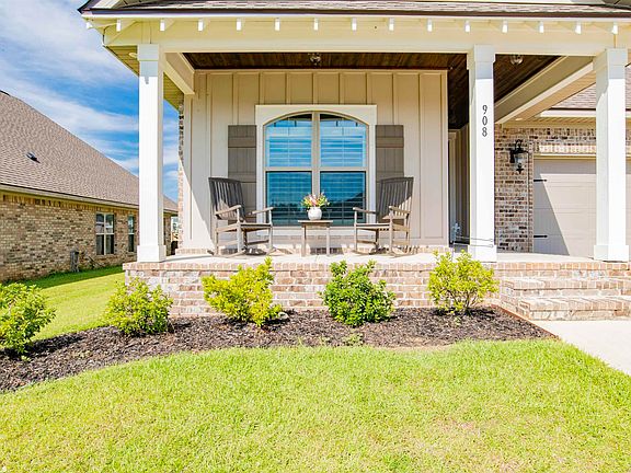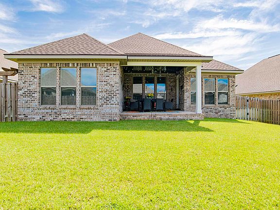 Step into this St. Augustine plan with soaring 12' ceilings and windows galore for an inviting, open atmosphere. Exterior features privacy fence and a 14 X 14' outdoor living area so entertaining can be enjoyed year-round. Interior features stainless steel Samsung appliances with gas range, flat top large granite island, tankless water heater, upgraded light fixtures, crown molding and upgraded hardwood floors in the foyer, dining room, living room & primary bedroom. Gorgeous primary bathroom with a zero-entry shower, built-in shower seat & separate handheld sprayer elegantly designed with a frameless shower glass above the half wall, no need for a shower door. Low maintenance, easy living for the active lifestyle without sacrificing luxury is what you'll find in this Truland home community. Community amenity package includes swimming pool, gazebo, playground, tennis court, and basketball court. This Gold Fortified home comes complete with a 4 zone irrigation system and a " Connected Home" package including Ring doorbell, Samsung tablet, outdoor camera, an Amazon Echo dot, Ecobee thermostat, keyless entry, 5 smart switches and more! The location of this community is excellent, located just minutes from Downtown Fairhope, with nearby recreational activities like golfing and the new Publix shopping center.