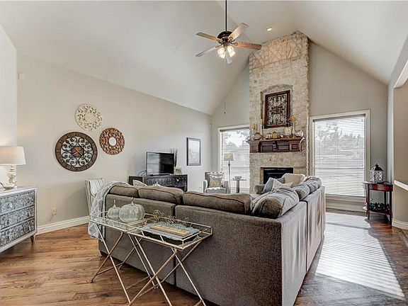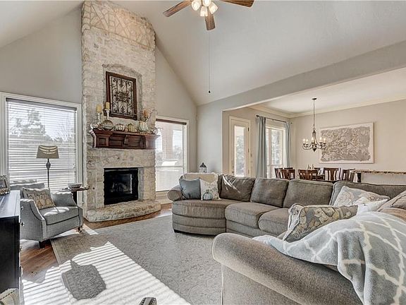 Open House this Sunday, 11/17, 2:00-4:00. Wonderfully updated property in Edmond's gated Caliburn addition which has a beautiful neighborhood pond & gazebo. Recently painted entire interior, kitchen cabinets & trim; new carpet. Great room has wood floors, cathedral ceiling, stone fireplace & is open to the kitchen. Kitchen features granite, gas cooktop, double ovens, spacious island, corner pantry & lots of cabinets. Huge study w/fireplace & builtins. Formal dining. Large master suite w/bay window sitting area, double walk-in closets, double vanities, whirlpool tub & shower. 3 other bedrooms on the first floor-all with walk-in closets & one w/private bath and the other 2 share a hall bath. Almost 1 acre lot (large enough for a pool), 3 car garage w/storm shelter & 1/2 bath down for guests. Upstairs includes a bonus room, closet and additional 1/2 bath. Spacious laundry room & additional storage throughout. Back yard has a covered patio, extra patio & a gas line for the grill.