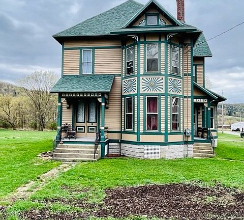 Grand 1874 Victorian home in the village of Monterey, full of interesting history. Gorgeous original details throughout, including hardwood flooring, two fireplaces, two staircases, and large glass pocket doors. Outside has been completely painted, porches rebuilt, and roof rebuilt/shingled in 2021. The inside has had some work and is awaiting your finishing touches! Pellet stove in living room. Large 3.67 acre flat lot with potential to subdivide. The possibilities are endless with this 6BR, 2BA beauty!