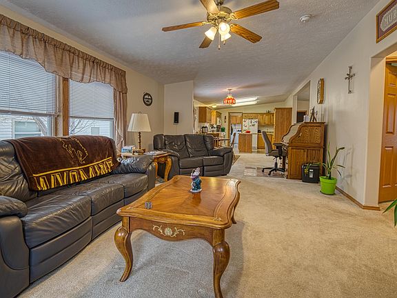 Looking for a home in town with a shop? All on one level this ranch style home offers 1680 sf with 3 bed, 2 bath & 26X36 heated & insulated shop. This home is in great condition & has been well cared for. Nice open floor plan with both living and family rooms, private master suite & large kitchen with center island. Featuring nice upgrades including cement board & metal roofing, double hung windows, extra insulation, a manicured landscape, front porch & back deck with a cityscape view & gas grill. Along with raised flower beds, smart sprinkler system & extra parking. The 1008 sf. shop includes a wood/coal burning stove, stereo system, cable hook up, 220V outlet, a 1/2 bath, utility sink w/ frost free hose bib, 8' doors & 10' sidewalls.