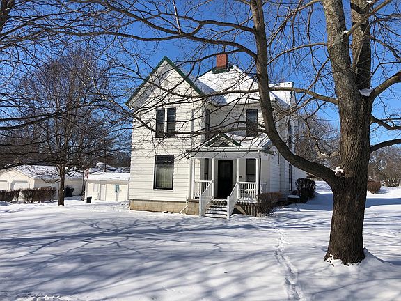 Old house charm: pocket doors, beautiful staircase, amazing hardwood floors, original fireplace. formal living room & dining room, Oversized corner lot with great yard that a gardener would love- just wait for spring. Home has an addition that was added at some point. Addition has open concept kitchen with oak cabinets and sitting area with fireplace. Metal roof 2017, Hot tub 2019 Recently house has had many updates: Knob & tube wiring cut & replaced along with new service & junction box, New Pelican water softening & sanitizing system, updated upstairs bath, new blinds kitchen, master, Livingroom & dining room & many rooms have new lighting. Wallpaper has been removed & painted in several rooms. New appliances come with 5 year geek squad. 2 car detached garage & shed.