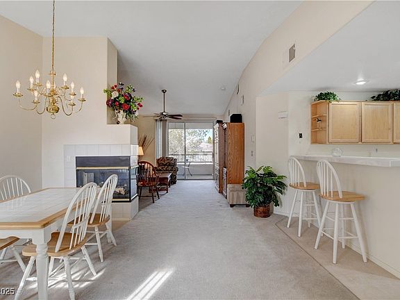 Located in the heart of Summerlin, this 2-bedroom, 2-bath upstairs condo offers 1,168 square feet of thoughtfully designed, single-level living in a secure, gated community. Lightly lived in as a second home, it features a spacious, open-concept layout, a cozy fireplace, and private balcony views overlooking the beautifully maintained pool, spa, and mature landscaping. The home is ideal for those seeking low-maintenance comfort with access to resort-style amenities, pristine grounds, and peaceful surroundings. Just minutes from the TPC Golf Course, Summerlin Hospital, top-rated schools, and premier shopping and dining, the location offers exceptional walkability and convenience. Whether you're looking for a relaxing second home, a lock-and-leave retreat, or a smart downsize without sacrificing lifestyle, this property checks every box. A detached 1-car garage adds security and storage, rounding out the ease and functionality of this inviting Summerlin residence.