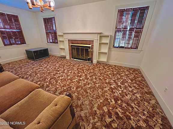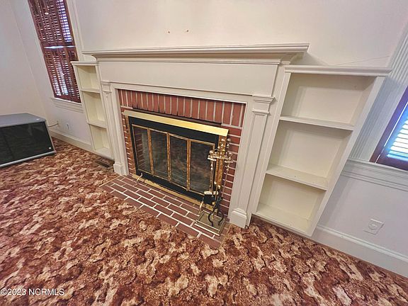Historical charm and character can be all yours with this lovely brick home; Original farmhouse porcelain sink is the star centerpiece of the kitchen; You will get arched doorways and hardwood floors (beneath carpeting). Fluted framing around every door and window sets this beauty apart from all the rest. Rich knotty pine paneling in what can double as a cozy den or office or nursery---you decide! Spacious living room with fireplace flanked by stately mantel and built-ins. Wooden shutters throughout interior offer privacy and double as window treatments. Large covered front porch is perfect for relaxing or decorating to your heart's content. Detached double carport with lots of off-street parking out back. Cement pads in backyard for possible dog runs and/or storage building/workshop. Huge floored attic offers tons of storage. Large walk-in closet in center of home that could possibly be converted to a designated laundry room and still have room for extra closet space. Quiet neighborhood close to shopping, banking and medical facilities. Roof 2007; Heat pump 2014; SELLER WOULD LIKE TO KEEP BENCH AT REAR OF YARD BY FENCE (won't be able to move it until the fall-when her family member can saw it off at ground as it is cemented down)