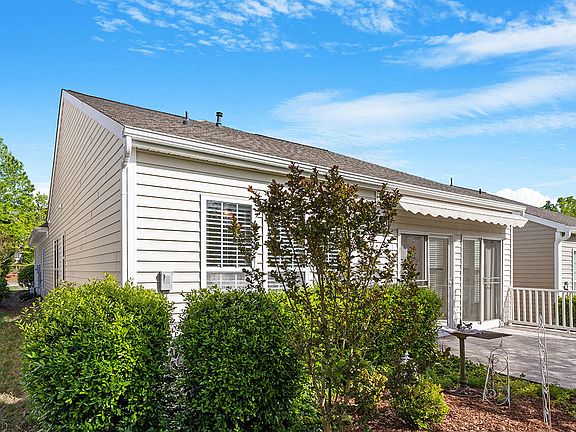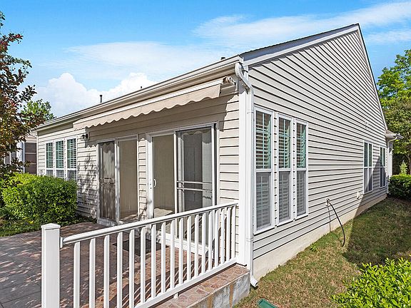 Exceptional Gray Myst floor plan nestled on a gorgeous private lot. Enjoy wooded and pastoral views from your sunroom and enlarged tiled patio with retractable awning. Move-in condition with all NEW interior paint (inc. ceilings, walls & trim) and NEW carpet. Roof replaced in 2021, water heater 2018, also a newer HVAC. Kitchen with s.s. appliances, Corian counters, built-in desk. Private street heading into the cul de sac with no houses across the street. Upgraded landscaping. Enjoy top notch amenities in this 55+ active adult community.