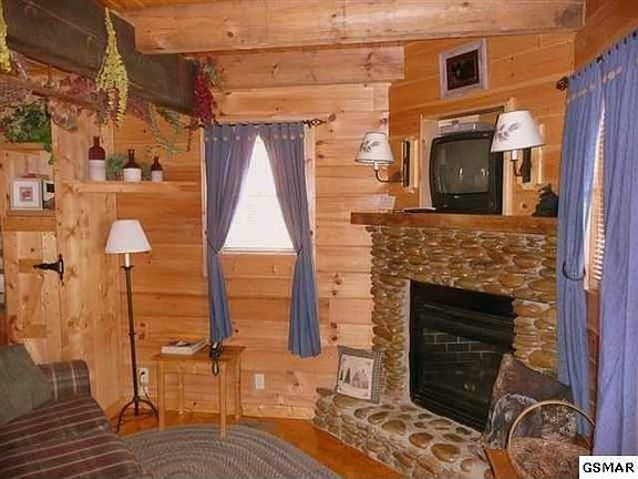 This well maintained adorable one bedroom cabin is ideal for the couple wanting easy access to both Gatlinburg and Pigeon Forge. Quiantand cozy inside, this whole log cabin offers two fireplaces, both made of riverstone. The large bedrom located on the upper level, offers a fireplace and special setting for the jacuzzi tub,giving a mountain view and a wonderful way to end the day. Two decks, one screened, with mountain views, are private. A sleeper sofa on the main level with a half bath. New hot tub on main level deck. A great opportunity for someone to have a mountain getaway retreat