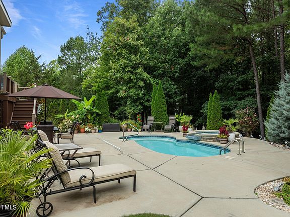 Custom Home in the sought-after Highlands of Holly Glen.Located on a 1/3+ acre lot backing to woods, enjoy a flat play area, privacy and your salt water POOL w/heated spillover spa.From the 3 season screened deck to the open floorplan to gourmet kitchen, this home is an entertainers paradise.2 Primary Suites, one up, one on main (handicap access) + office + bonus + 2 additional bdrs w/private baths.Endless upgrades: wood floors t/o (no carpet), Jenn Air commercial appliances, double oven, extended island w/granite, butlers pantry, full house generator, walk in storage, sealed crawl space, tankless H2O heater, extended garage, 3 season deck w/fireplace, trek deck w/gas stub, shed, wet bar in bonus, laundry sink, extensive trim.  Holly Glen offers 2 pools, sports courts, clubhouse, fitness, walking trails, activities and nearby top ranked schools.Minutes to 55/Ting Park /shopping /dining and 540.