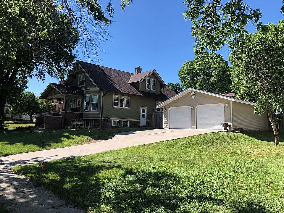 Perfect location! Corner lot. Just a block from downtown and 1/2 block from middle/high schools. 3-bedroom (+2 bonus rooms), 3-bathroom home with tons of character and original woodwork. Kitchen updated in 2020 with cabinet resurfacing and stainless-steel appliances. Main floor laundry just off the kitchen. There is 1 bedroom on the main floor, along with a full bath, dining room, living room and a den that works perfectly as a guest bedroom and/or office. Upstairs contains a master bedroom with on-suite bath, a small seating area and a 3rd bedroom with walk in closet and two access doors for attic storage. The master bath was completely remodeled in 2017 and includes walk in closet space, whirlpool soaker-tub, quartz counter tops and tub-surround and has both tile and laminate flooring throughout. Basement is 75% finished with laminate and tile floors, full bath, a large family room and another bonus room. Basement is also plumbed & ready to have the bar added. 2 car detached garage with its own 220 breaker box. Also 1 car detached garage along alley used for storage. New roof on all structures and new gutters on the home in 2014. Backyard is completely enclosed with wood privacy fence and includes a wood playground set, a pergola on the patio and hot tub (on dedicated 220-volt outlet) with privacy curtains, which is perfect for quiet family nights or entertaining. Willing to work with your agent.