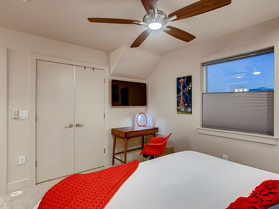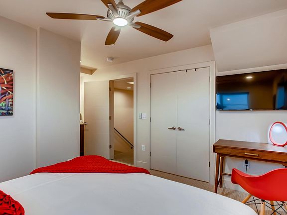 This contemporary townhome is artfully designed and thoughtfully appointed to make for a splendid stay. It features a crisp, cool design with unique furnishings and colorful artwork. You will love the chef's kitchen, alluring bedrooms and the rooftop terrace with views of the Rocky Mountains from the private hot tub. Take in the sweeping views and enjoy the quiet atmosphere of our neighborhood or head downtown to discover the remarkable tastes of Fort Collins. All utilities included, free high-speed WiFi, linens/towels, washer/dryer, keyless entry, central heating, central air conditioning and cleaning essentials provided. PARKING: There are 2 dedicated parking spots behind the home (1-car private garage and a port behind the house). Free street parking is also available in front of the home. HOUSE RULES: No smoking No events, parties, or large gatherings Community Quiet Hours 10 pm 8 am (strictly enforced) PET POLICY: Pre-approved dogs allowed (no aggressive breeds). $150 for 1 dog, $175 for 2 dogs. LEASE TERMS: This is a fully-furnished rental with flexible lease terms of 1 to 12 months. Rate includes linens, sheets, towels, blankets, pillows, comforters, dishware, pots, pans, soaps, iron, ironing board, hair dryer, etc. **The rate posted is an average rate, it will fluctuate seasonally.