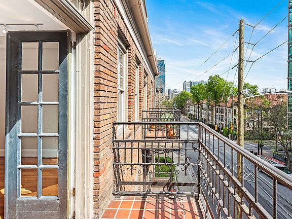 Top floor corner unit in classic 1920's midtown mid rise. This unit features beautiful hardwood floors, high ceilings, fresh paint throughout, gallery style track lighting and an open airy floor plan that leads to a large balcony (with room for a table and chairs) over looking Juniper! Kitchen features brand new sink, disposal and fixtures and gorgeous white quartz counter and bar with a waterfall edge. Brand new subway tile back splash and modern lighting. Dozens of restaurants, bars and shops within blocks. Walk to Piedmont park, beltline and MARTA! The one bedroom unit includes a bonus room that could be an office, den or extra bedroom that has a stackable w/d included. Lovely views from every window and tons of natural light. New white subway tile in bathroom complements the pedestal sink and matching toilet. Linen storage in the bathroom too. Parking is gated and assigned. Dogs allowed! A beautiful building steps from Piedmont park, Peachtree street and MARTA station. All of midtown at your doorstep! This unit has no neighbors above or next door; tons of privacy, great views and quiet. Gorgeous french doors lead to a balcony large enough for a table and chairs for dining, morning coffee or cocktails. Enjoy city views from every window. Ceiling fans in every room, lots of electrical outlets for all your tech. Programable thermostat and well insulated. Common areas are clean and well kept, new carpeting and gorgeous marble foyer entry. All doors have coded/keyfob entry; very safe and secure. Classic architecture and modern convenience, in one of midtowns most beautiful midrise buildings! Be sure to check out the matterport tour in the listing icons above for a virtual walk through.