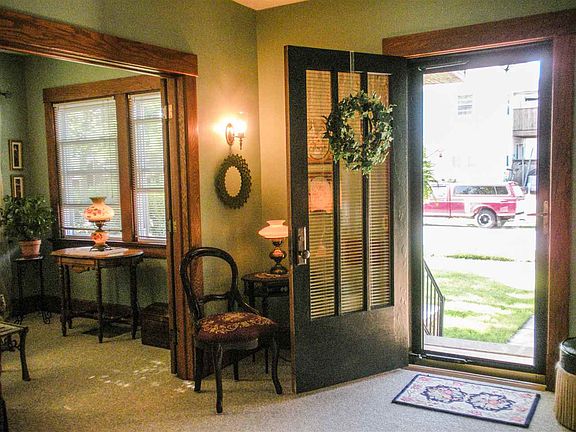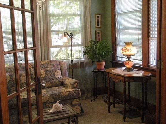 Welcome to this well-loved beautiful, quaint home. Beauty starts at the first look. Nearly 1600 finished sq ft, 3 bedroom, 1.5 bathroom, 2 car detached garage has loads of character. Large living room with two built in cabinets, dining room, breakfast nook, remodeled kitchen, sunroom, don't forget the airing porch upstairs and all solid oak doors throughout. The back porch is just beginning of stepping into a luscious flower garden that has some of the most beautiful colors. New roof on house & garage, replacement windows. Furnace and A/C serviced each year. Appliance included but not warranted. Same owners for 43yrs. This is a wonderful home awaiting a new family to start their memories.