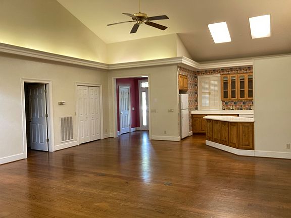 This home is picture perfect including the white picket fence! This one level 3 bedroom, 2.5 bath home is located in the heart of Roanoke just minutes from town and within walking distance to the high school. The home features a open floor plan with vaulted ceilings. Hardwood floors flow throughout large family room, kitchen, and bedrooms. Sunroom provides lots of natural lighting. Oversized two car detached garage also has an enclosed office and additional storage.