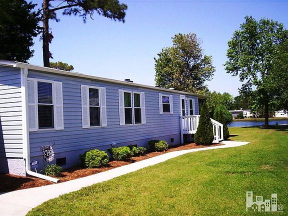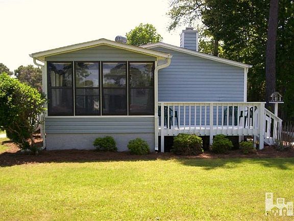 Beautifully maintained and updated 2 bedroom, 2 bath home sited at the back of the circle to afford privacy. Open plan, fireplace, large living and dining areas. Large Screen TV in living room remains. Includes Laundry Room with washer and dryer, well appointed spacious kitchen; all appliances remain along with some furnishings. Attached Single Car Garage, Storage Area and Water Softener. Sun Room and Deck give fabulous views of Topsail Greens Lake. This would make a great retirement get-away or permane nt home. Located in Topsail Greens, a lovely, welcoming manufactured home community. Dues include water & sewer, common area & road maintenance and yard mowing.