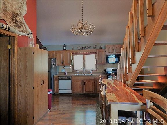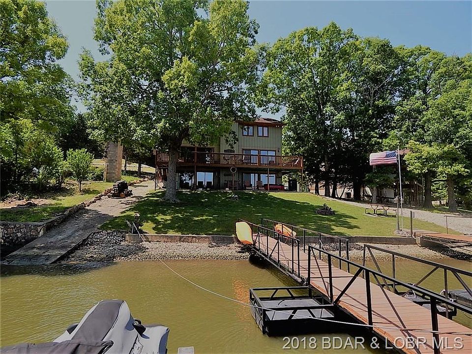 This home has an awesome view from large windows in the living and dining area of main channel and nothing but vacant land across. Very well done and full of charm, open floor plan, hot tub on deck, remodeled baths, wood floors, gas fireplace, full unfinished basement and gentle lot down to 2 well dock with 6000# and 9000# hoist and large swim platform. Lot across the road with 30x40 metal barn which includes a scissor hydraulic car lift and compressor is available for additional $50,000 (931 Long ShoreCircle)